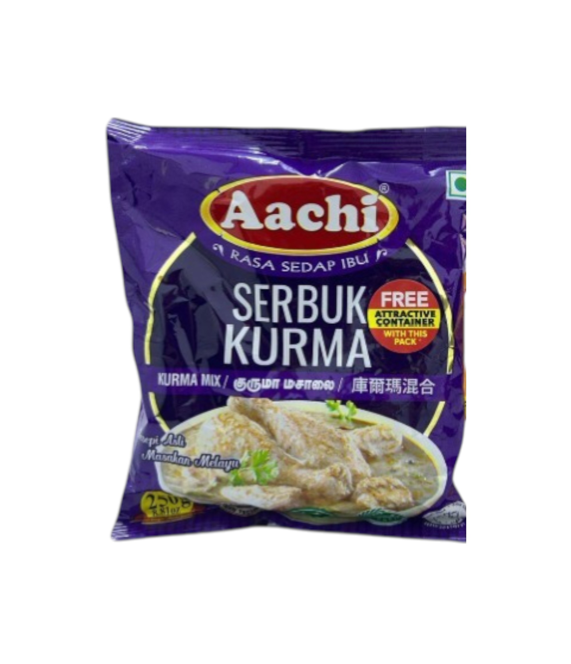 Aachi Serbuk Kurma (250g) is a spice blend designed to create authentic and flavorful kurma dishes. It's a popular choice for both chicken and beef kurma, enhancing the rich and aromatic flavors of the curry. The mix typically includes ingredients like coriander, cumin, fennel, white pepper, star anise, cinnamon, and other spices. It's a versatile seasoning that can be used in traditional recipes or to add a unique twist to modern dishes.