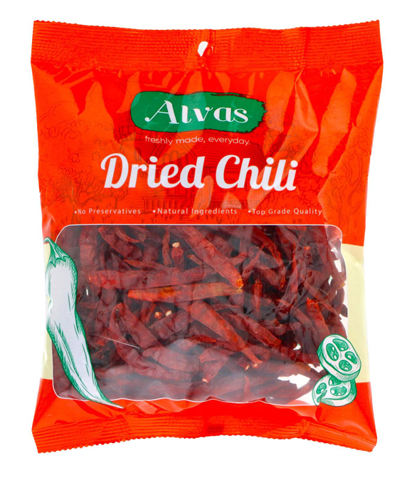 Alvas Dried Chilli 100g is a product offering carefully selected and dried chilies, known for their intense flavor and spiciness. They are a popular choice for adding depth and complexity to various dishes like curries, soups, sauces, and stir-fries. The chilies are typically sun-dried to enhance their flavor and are available in whole or crushed form to allow for customization of the desired heat level