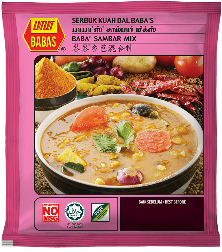 Baba's Sambar Mix 125g is a spice blend designed to make preparing South Indian sambar (a lentil-based stew) easier and more convenient. It's made with a combination of clean, pure spices, hygienically processed and packed, and is free from MSG, additives, and preservatives. The mix is known for its rich, flavorful, and aromatic taste, offering an authentic sambar experience.