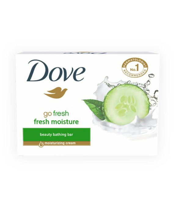 Dove Fresh Moisture Beauty Bathing Bar 75g is a beauty bar designed for a refreshing and hydrating cleansing experience. It combines Dove's gentle cleansers and ¼ moisturizing cream with the scent of cucumber and green tea. Unlike regular soap, it aims to protect the skin's natural moisture, leaving it feeling softer and smoother. The bar is suitable for all skin types and can be used on the face as a mild cleanser.