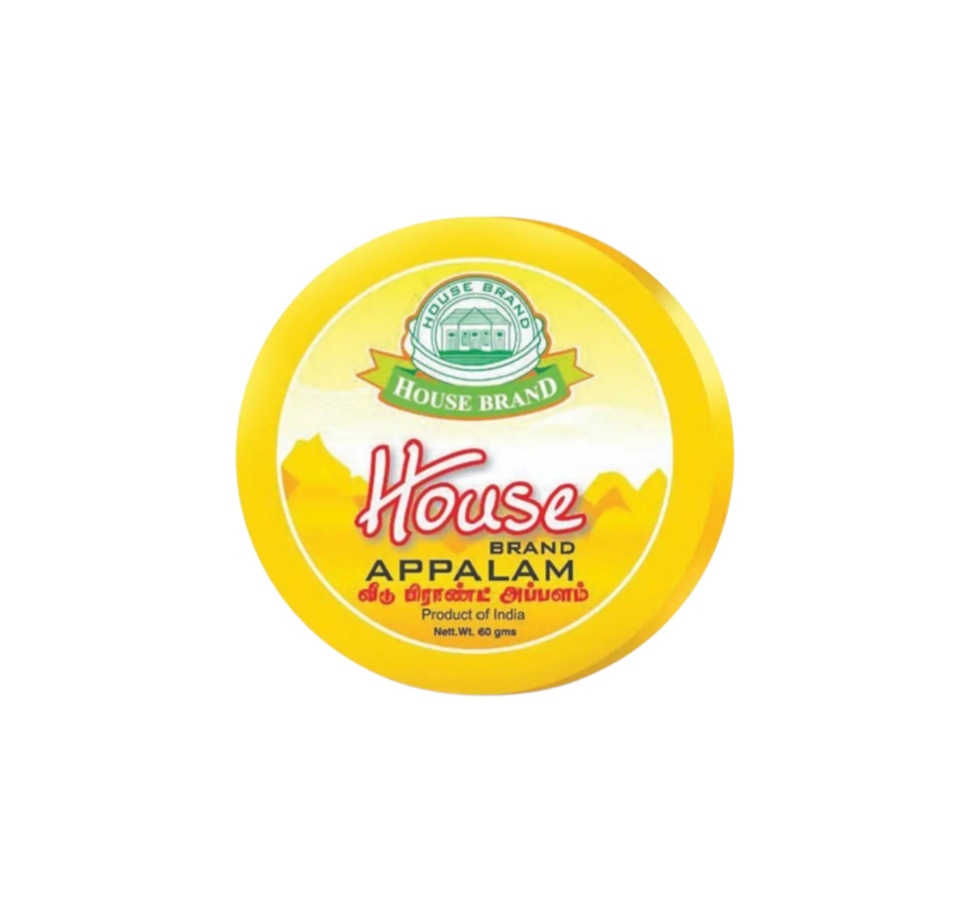 <span data-huuid="12684099734581618999">House Brand Appalam is <mark class="QVRyCf">a thin and crisp, disc-shaped food made from urad flour and rice flour</mark>, commonly enjoyed as an accompaniment to Indian meals. </span><span data-huuid="12684099734581619752">It's a popular snack, known for its light and crunchy texture, and is typically fried or cooked with dry heat.<span class="pjBG2e" data-cid="391eac32-d214-420d-b385-57ce4e799c44"><span class="UV3uM"> </span></span></span>