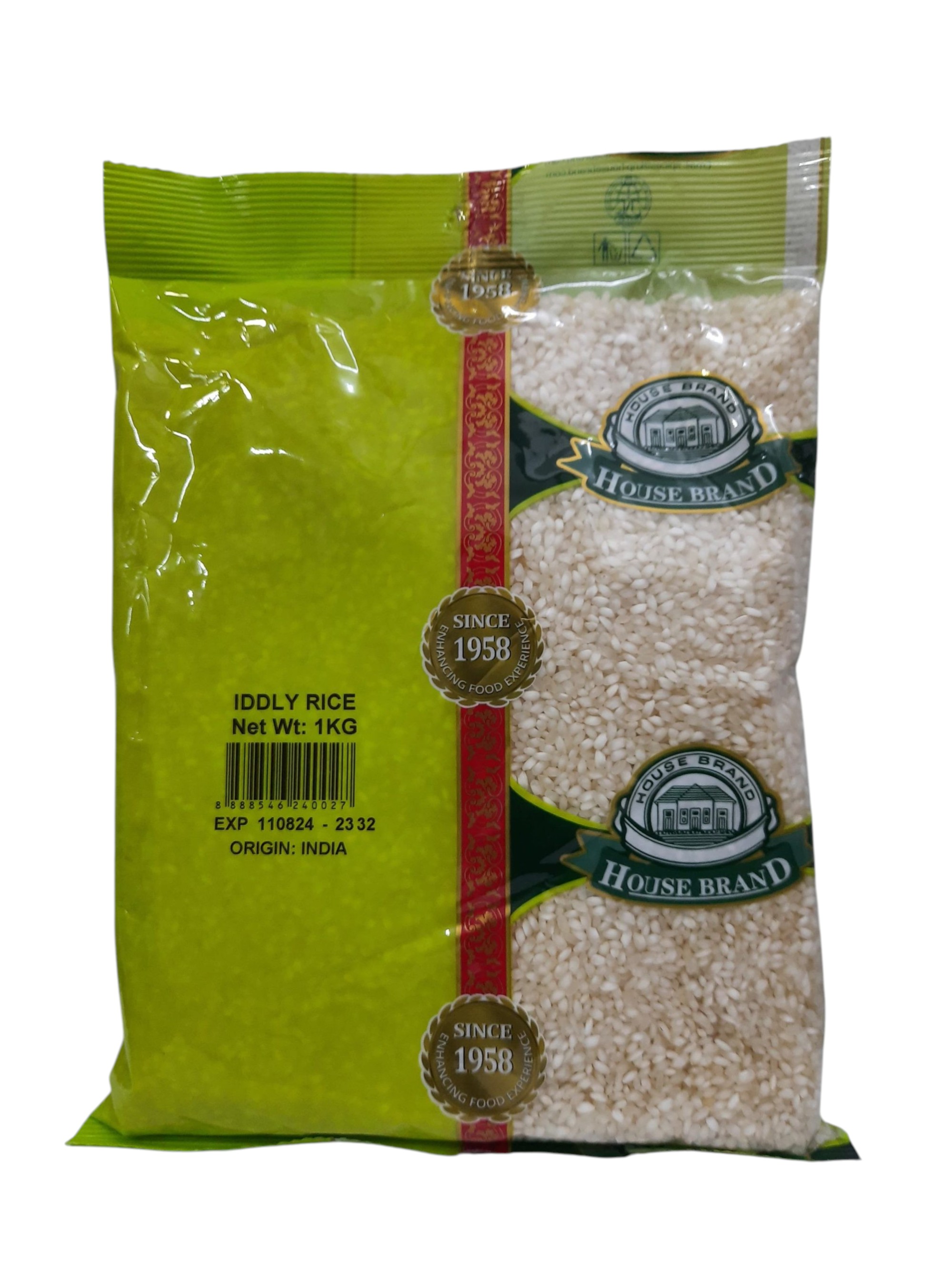 House brand iddly rice, typically sold in 1kg packs, is a parboiled rice variety specifically chosen for making soft, fluffy idlis and crispy dosas. It's a popular choice in Southern India, where idlis are a staple. The parboiling process reduces soaking time before grinding the rice for the batter.