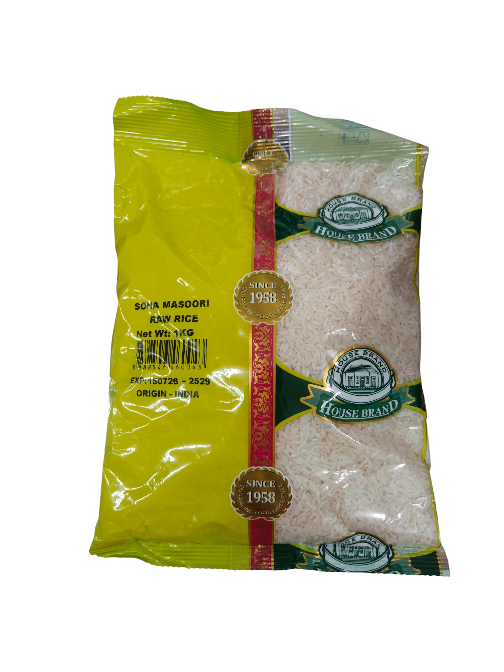House brand Sona Masoori raw rice, available in a 1kg pack, is a premium quality, aromatic rice known for its fluffy texture and versatility. It is a medium-grain rice that cooks to a soft and non-sticky consistency, making it ideal for a variety of dishes like biryani, pulao, and everyday rice meals. This rice is also known for its light and easily digestible nature, with a delightful aroma when cooked.