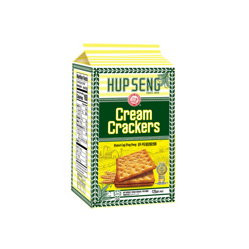 Hup Seng Cream Crackers are light, crispy, and slightly sweet crackers, known for their versatility and classic taste. They are made with premium ingredients and baked under strict hygienic conditions. These crackers are often enjoyed on their own as a snack, paired with various spreads, cheeses, or dips, or even used as a base for other dishes.
