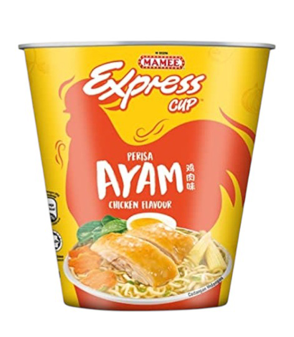 Mamee Express Cup Perisa Ayam (Chicken Flavor) is a 64g instant noodle cup designed for a quick and convenient meal. It features firm noodles with a rich, savory chicken broth, ready in just 3 minutes with the addition of hot water. This product is ideal for busy individuals seeking a satisfying and flavorful instant noodle experience