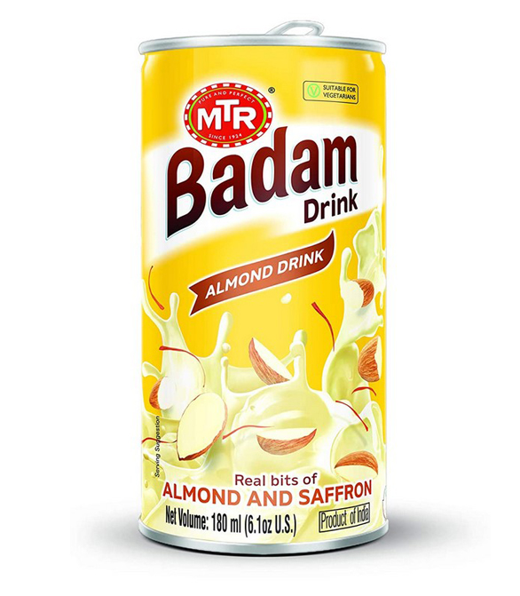 MTR Badam Almond Flavored Drink is a ready-to-drink beverage that combines the flavors of almonds and saffron in a convenient 180ml can. It's made with real bits of almond and saffron, offering a traditional Indian taste with a blend of milk, sugar, and cardamom flavoring. This beverage is designed to be enjoyed chilled, providing a refreshing and satisfying taste experience, especially for those who appreciate the authentic flavors of a traditional Badam drink