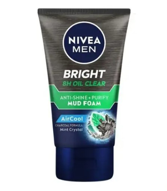 NIVEA Men Bright 8H Oil Clear Anti-Shine + Purify Mud Foam is a facial cleanser designed for men, aiming to control oil and brighten the skin. It uses a mud foam formula to deeply cleanse, remove excess oil, and purify the skin. The product is designed to leave skin looking brighter, feeling refreshed, and with reduced shine for up to 8 hours.
