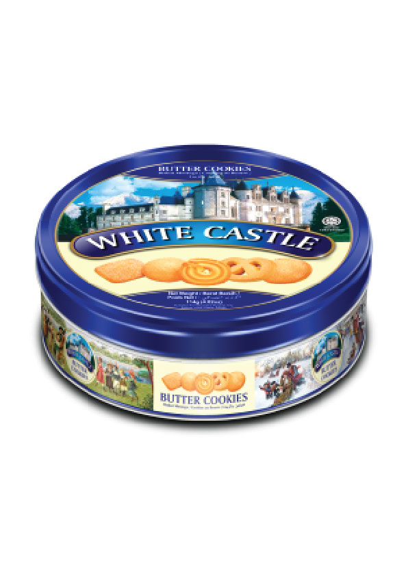 White Castle Butter Cookies are known for their superb crunch and rich butter aroma, offering an irresistible taste and texture that symbolizes high quality. They are a classic butter cookie, often enjoyed during breakfast or tea time with a beverage like coffee, tea, or milk. The cookies are typically packed in a tin and are a popular gift choice for various occasions.
